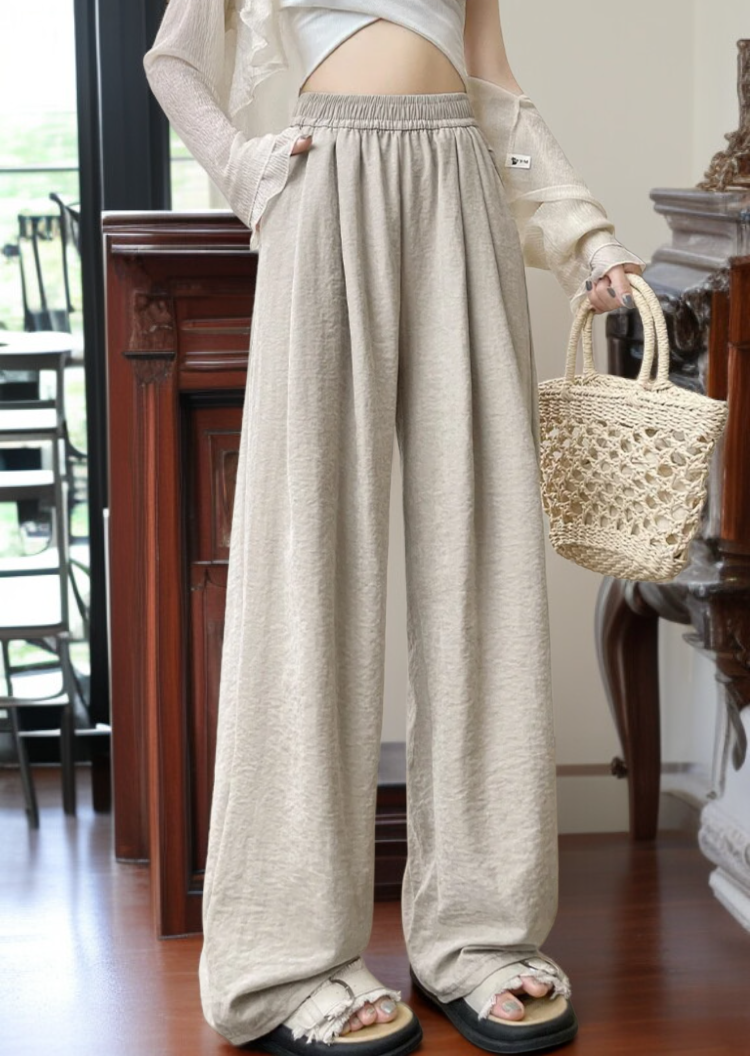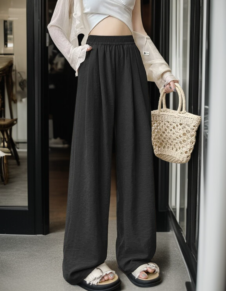 ● 軽やかなアイスシルク素材を使用し、夏でも涼しく快適な履き心地を実現。汗ばむ季節に最適なワイドレッグパンツです。